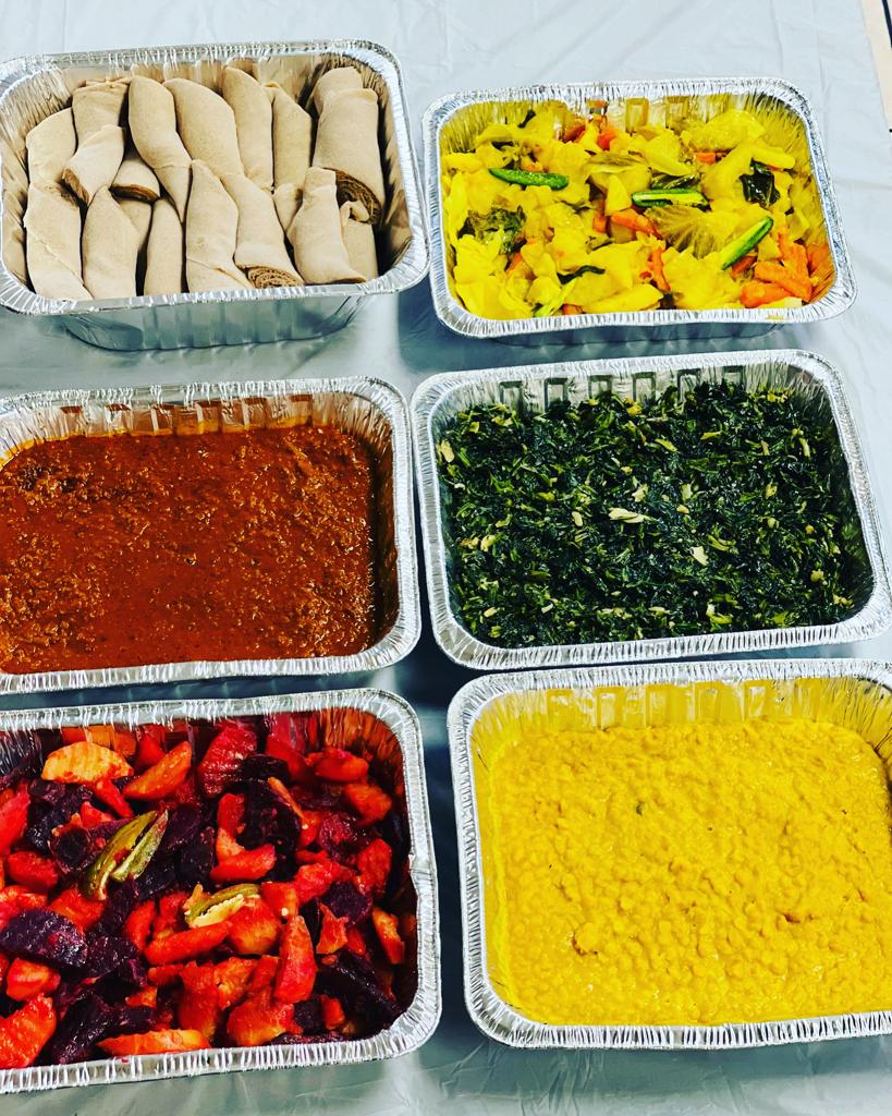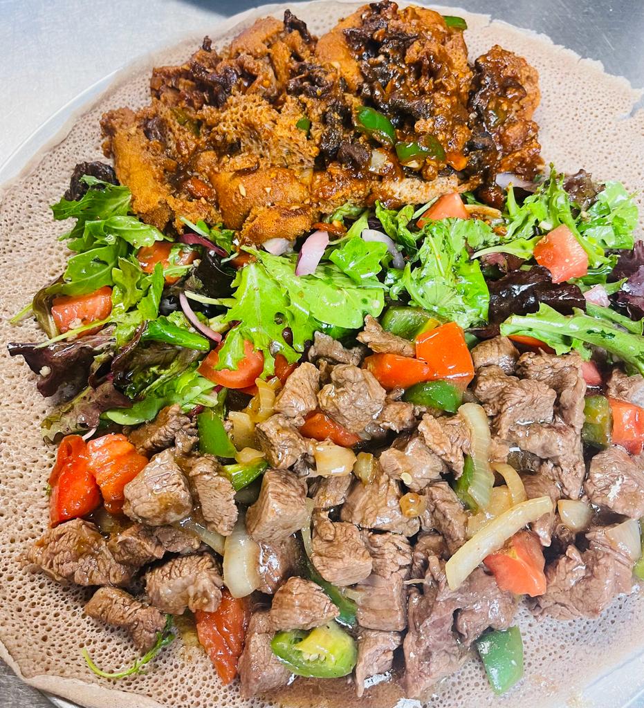 The Ethiopian Vegetarian Combo, known as “Ye’qimem Beyaynetu,” is a delightful and flavorful assortment of plant-based dishes that showcases the diversity of Ethiopian cuisine. This vibrant platter typically includes an array of lentil stews, chickpea curries, and various vegetable preparations, all served on a base of the spongy and sour injera bread. Each component of the combo is thoughtfully spiced with a blend of aromatic herbs and spices, creating a symphony of tastes that appeal to both vegetarians and those looking to explore the rich tapestry of Ethiopian flavors.